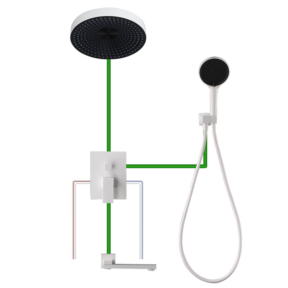 - [3-Functions]: Rainfall overhead shower, handheld spray, tub spout. Double cross handles easily control water temperature and water flow. The water flow rate is 1.4GPM, 5.29 L/min.