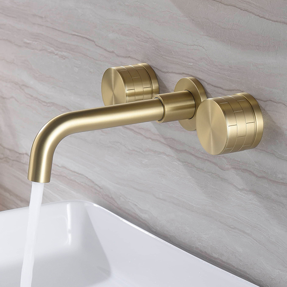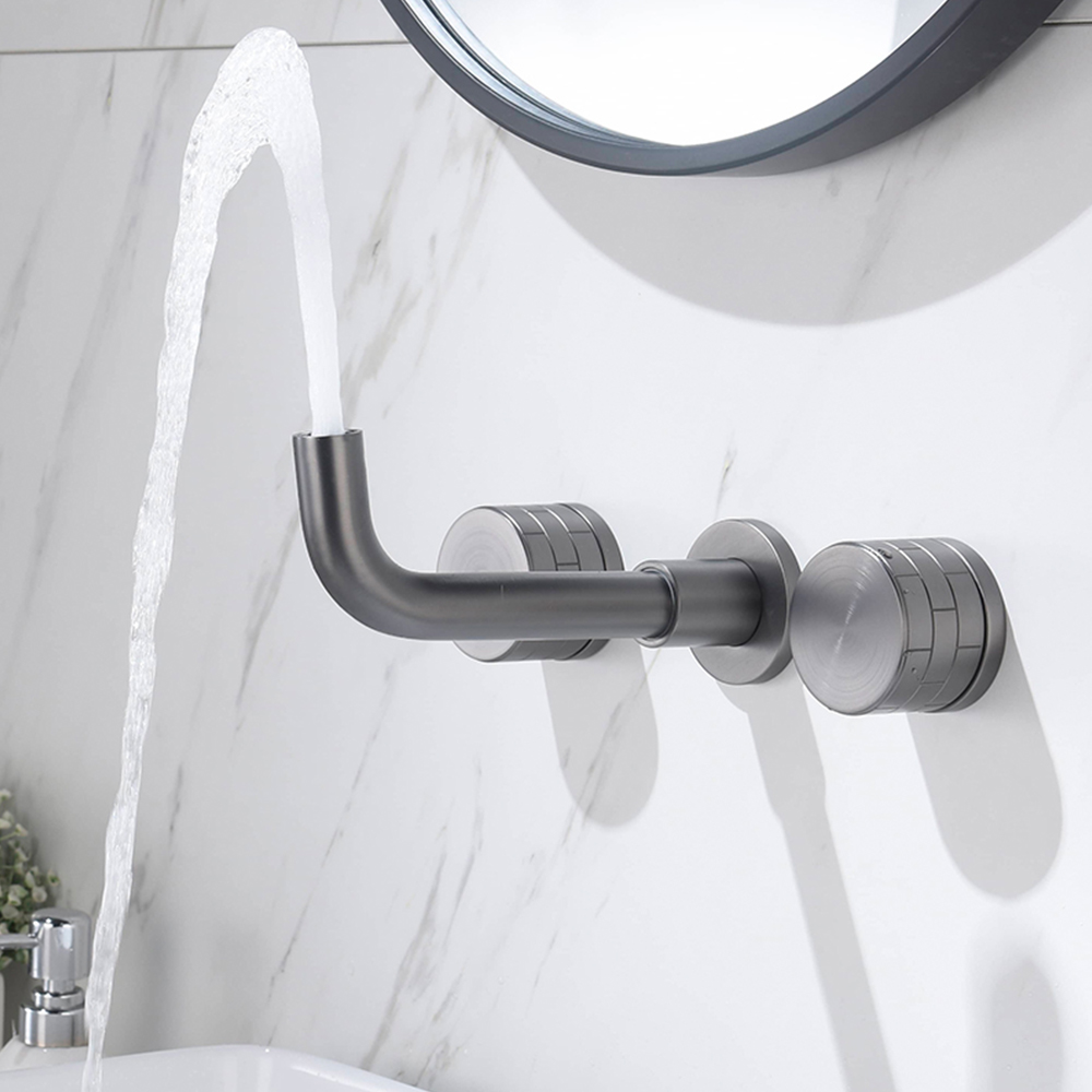 - 【Premium Brass Construction】The Wall mount 2 handle bathroom sink Faucet Solid Brass material body construction,can prevent corrosion to ensure the durability and stability of the product.