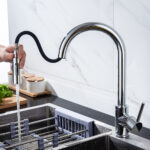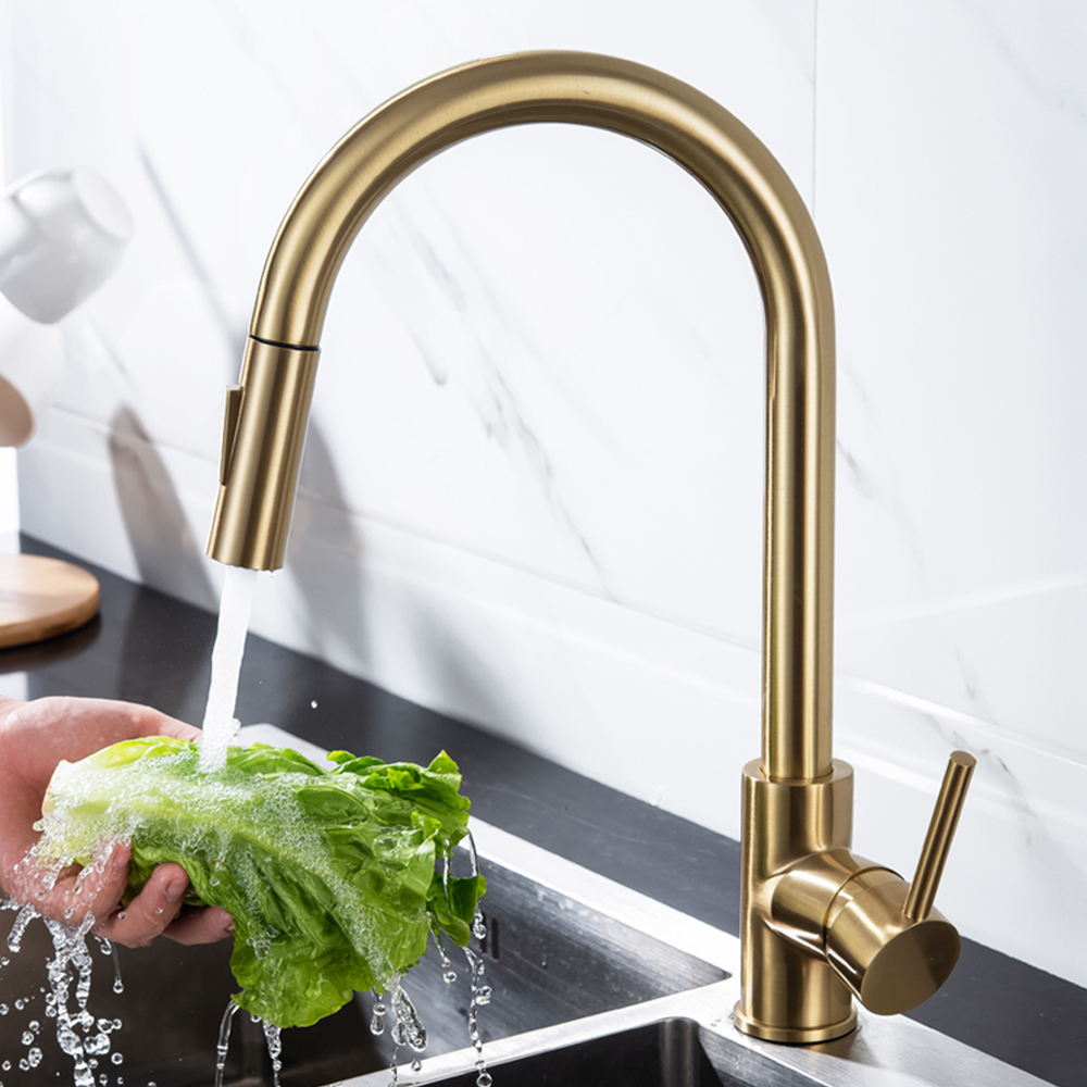 - Durable Brass Construction: Crafted from high-quality brass, this faucet is built to last, featuring a ceramic valve for drip-free operation and a clever magnetic docking system that keeps the pull-out spray head securely in place.