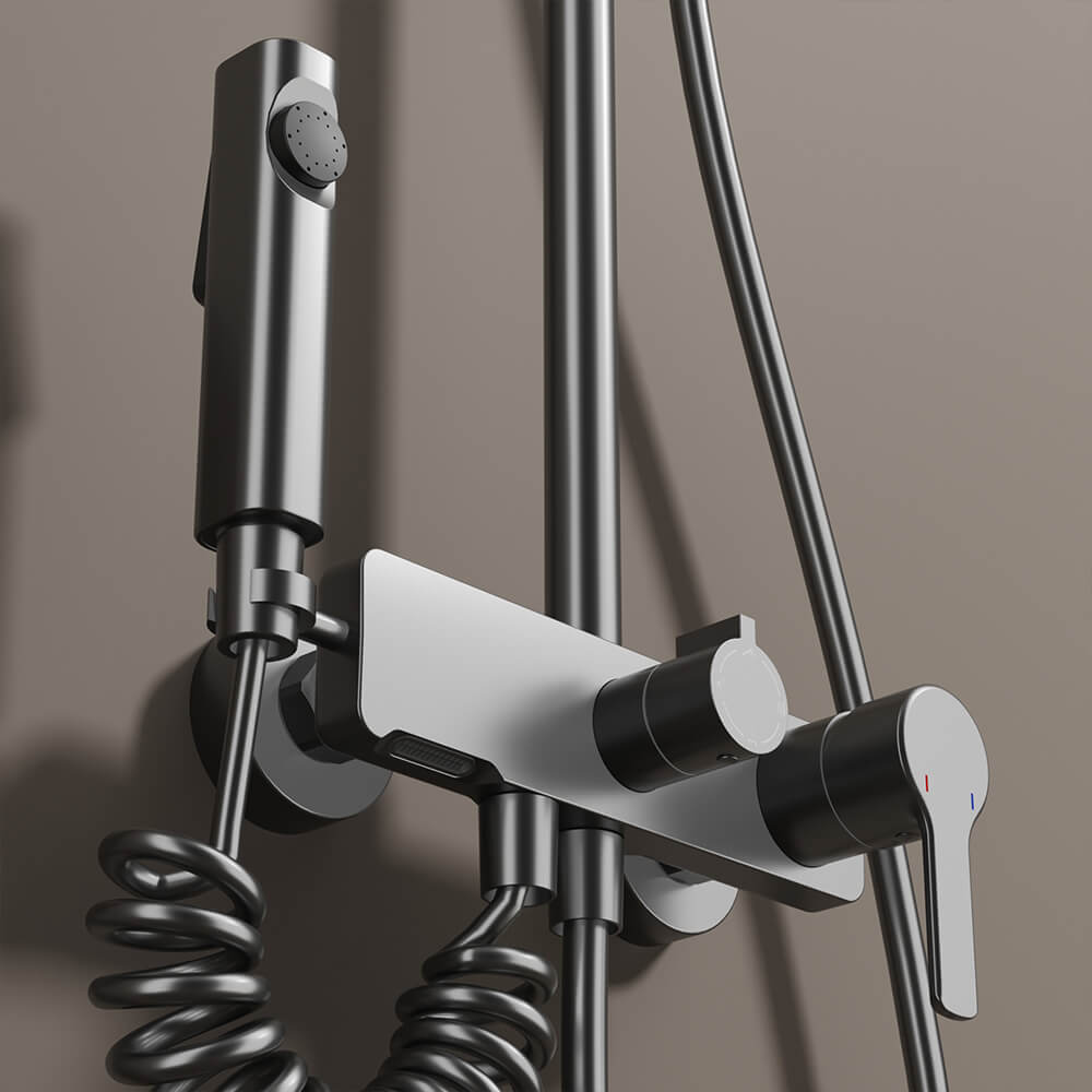 Gray brass shower set, wall-mounted, lifting, multi-function hot and cold rain shower, big top spray LM2522