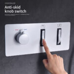 - Push Button Diverter: Vanfoxle has developed an improved version of water control —— Replacing the traditional square-shaped controller to a push-button diverter. The new mechanism ensures users don’t accidentally switch to the wrong mode with slippy hands. Additionally, with the help of the new button design, users can enable three rainfall shower mode, bathtub spout and handheld shower spray simultaneously in their preferred shower scenario.