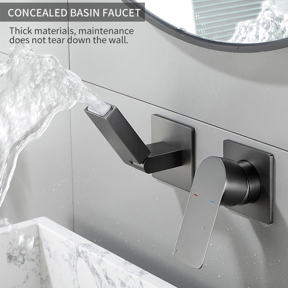 - SINGLE HANDLE DESIGN–Brushed nickel wall mount bathroom faucet is designed for wall mounted to save space and complement most bathroom sinks.Single handle design makes it easier to control water flow and temperature.