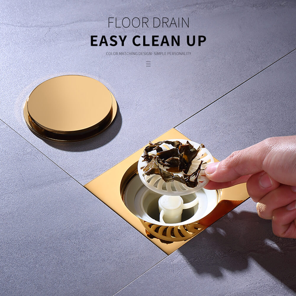 - Durable Construction: 6-inch square shower drain made of durable 304 stainless steel,which has long service life. Drain surface is well brushed that can help protect against corrosion, scratches and rust for long-lasting durability. with elegant brushed gold finish for modern bathroom aesthetics.