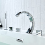 Copper bathtub side large flow waterfall hot and cold water faucet split five-hole shower set YG2501