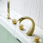 Brass brushed gold split bathtub faucet with three or four holes hot and cold water faucet set with portable shower YG1006