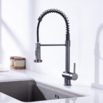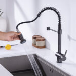 - 【360°Swivel and Retractable Hose】This property provide extensive reach and flexibility, making the kitchen faucet with pull down sprayer easy to clean every corner of your sink and handle large pots and dishes