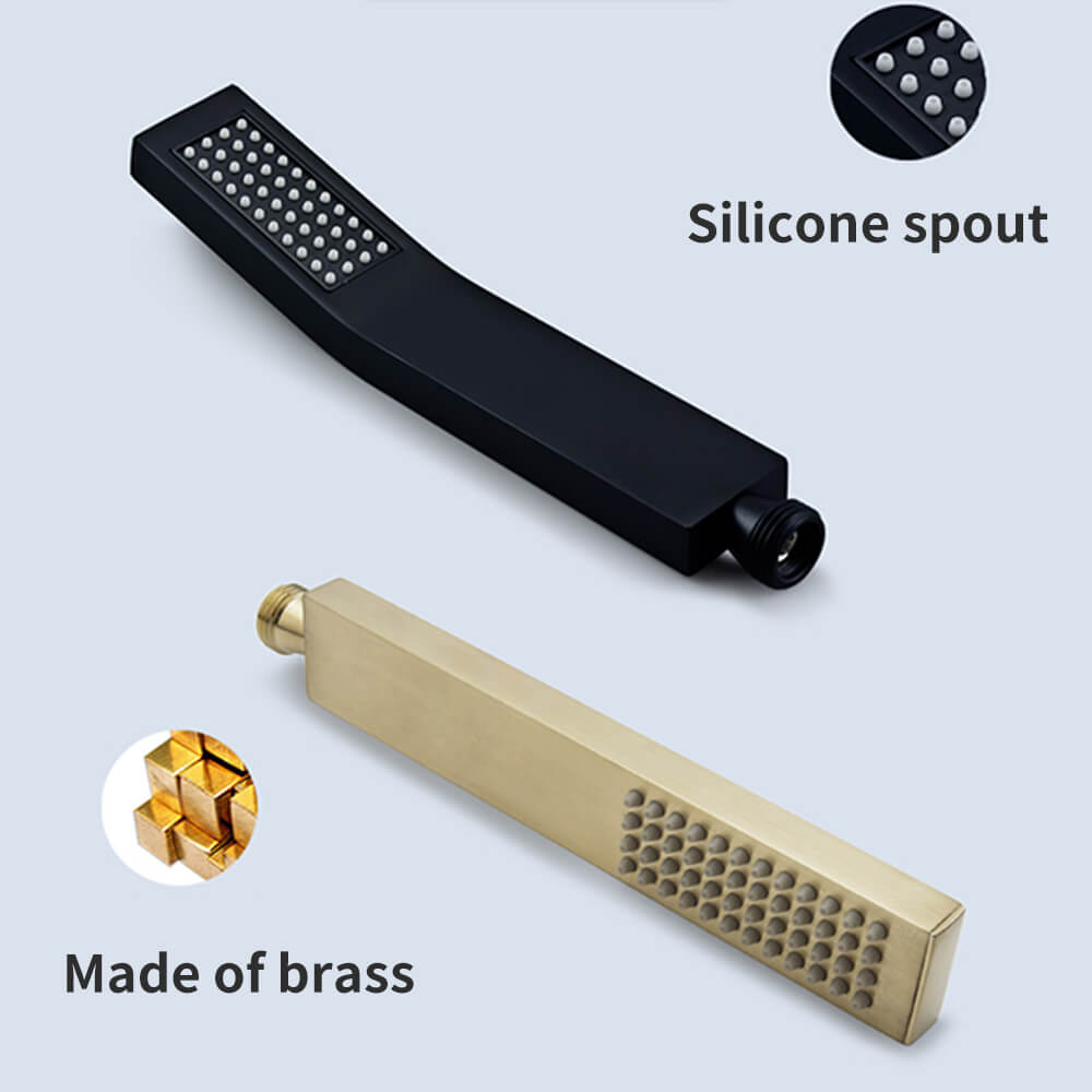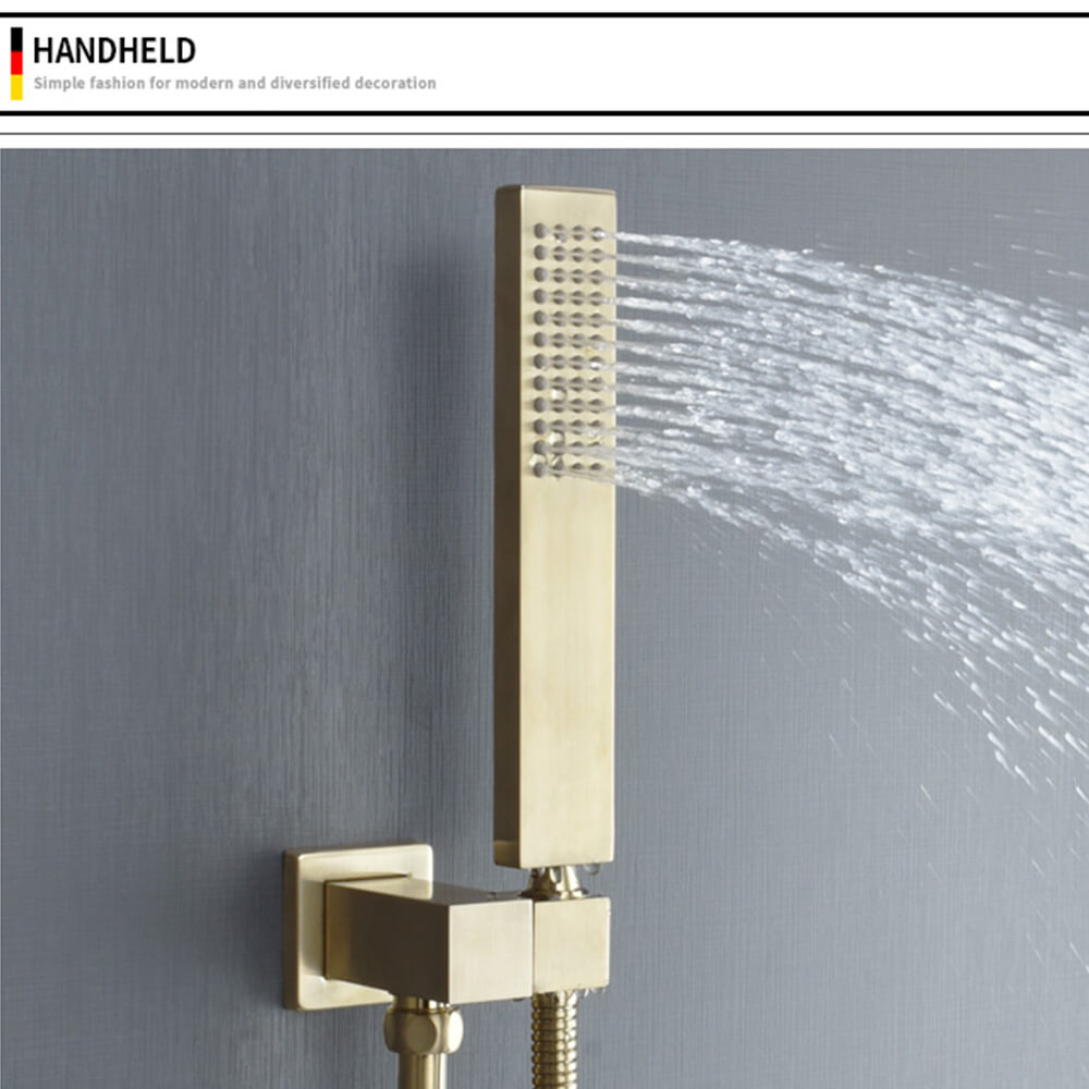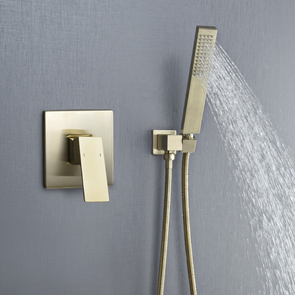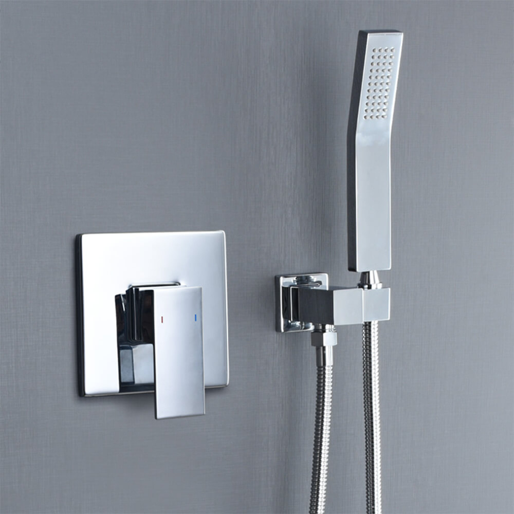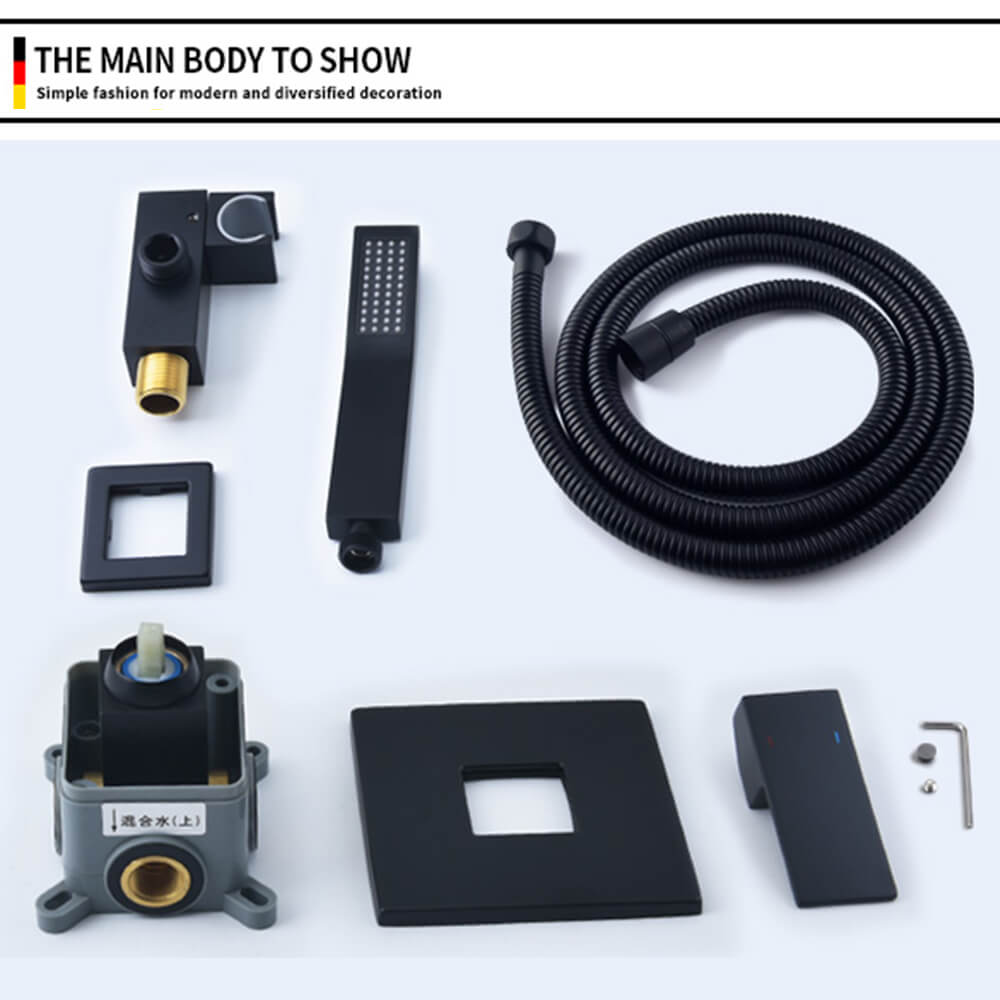 - Shower Faucet Set Accessories: Including -6 inch square rain shower head(304 stainless steel) -Handheld shower head(304 stainless steel)-6 inches shower arm(304 stainless steel)59 inches shower hose(304 stainless steel)-single function valve trim kit(304 stainless steel)-shower mixer control valve(Brass)-3 functions diverter(Brass)